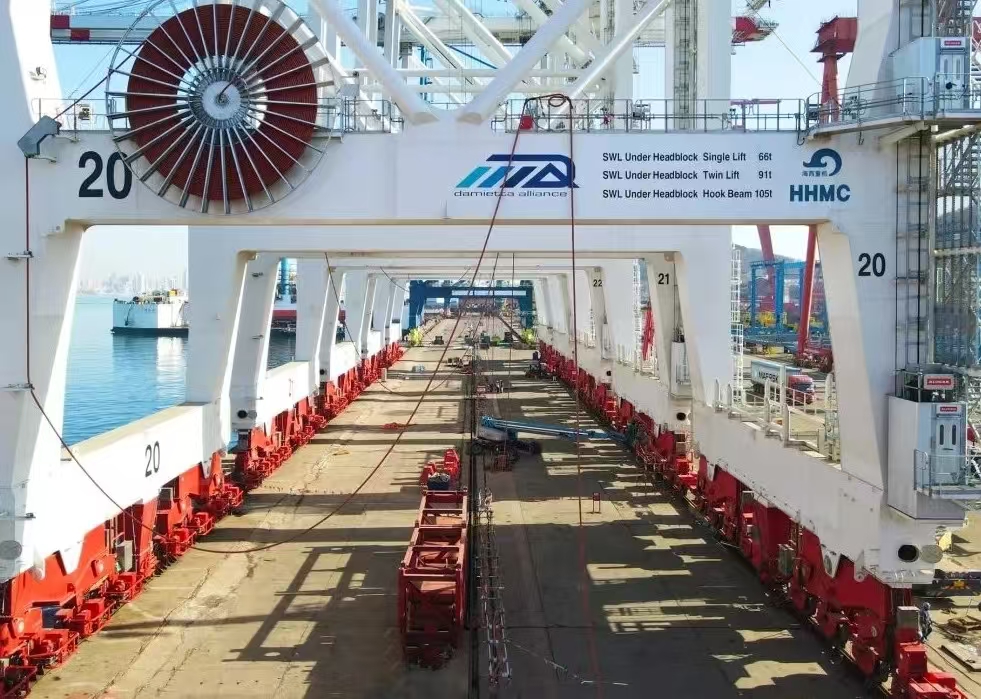 2025年春節假期,《哪吒2》的熱浪席卷熒幕。哪吒腳踏風火輪,手持火焰槍,踏火而行,刺破云霄,騰云駕霧,所向披靡。中船旗下的武漢船機海西重機公司為各大港口打造的“鋼鐵哪吒”——港口起重機(港機)和岸邊集裝箱起重機(岸橋)載著貨物穿梭往返碼頭之間,港機的行走機構和岸橋的前伸臂,恰似哪吒的神兵“風火輪”“火焰槍”照進現實的科技化身。