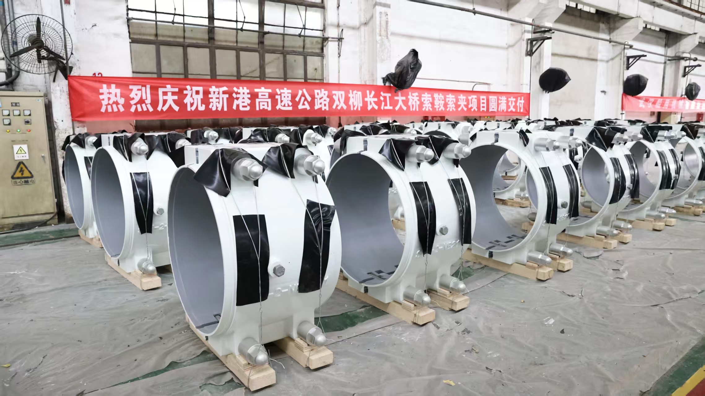 日前,中船集團武漢船機承制的新港高速公路雙柳長江大橋最后一批索夾全部發運。