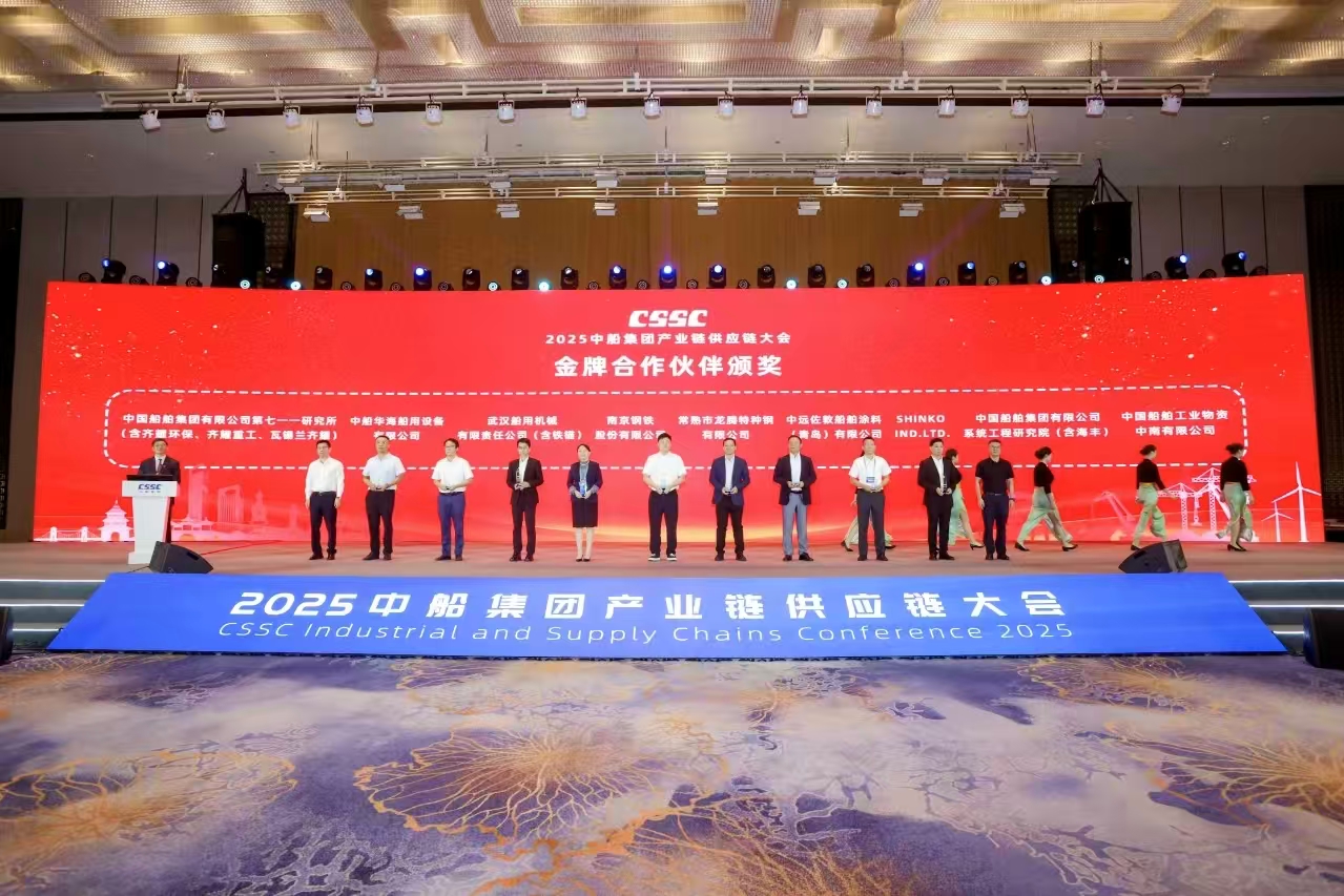 9月19日,以“揚帆聚鏈 智領深藍”為主題的中船集團產業鏈供應鏈大會在揚州舉行。中船集團武漢船機以及子公司鐵錨焊材憑借優質的產品和良好的服務榮獲集團公司“金牌合作伙伴”稱號。